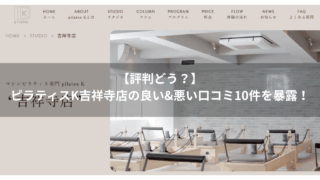 ピラティスK【評判どう?】ピラティスK吉祥寺店の良い&悪い口コミ10件を暴露! 東京都武蔵野市にある「ピラティスK吉祥寺店の口コミや評判が知りたい」こういった思いを持つ方はいないでしょうか?そこで本記事では、ピラティスK吉祥寺店についての世間の声をまとめていきます。ピラティスK吉祥寺店の良い口コミと悪い口コミは以下の通... 2025.12.01ピラティスK