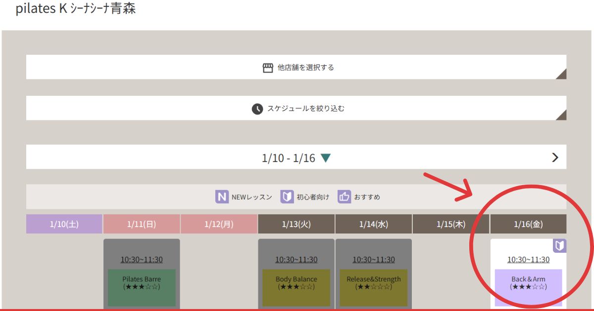 | 種類 | マシンピラティス | マシンピラティス マットピラティス ヨガ | マットピラティス | 詳細不明 | マシンピラティス | マシンピラティス ヨガ |