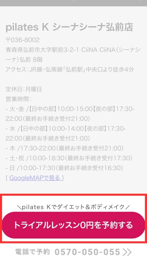 ピラティスKシーナシーナ弘前店基本情報