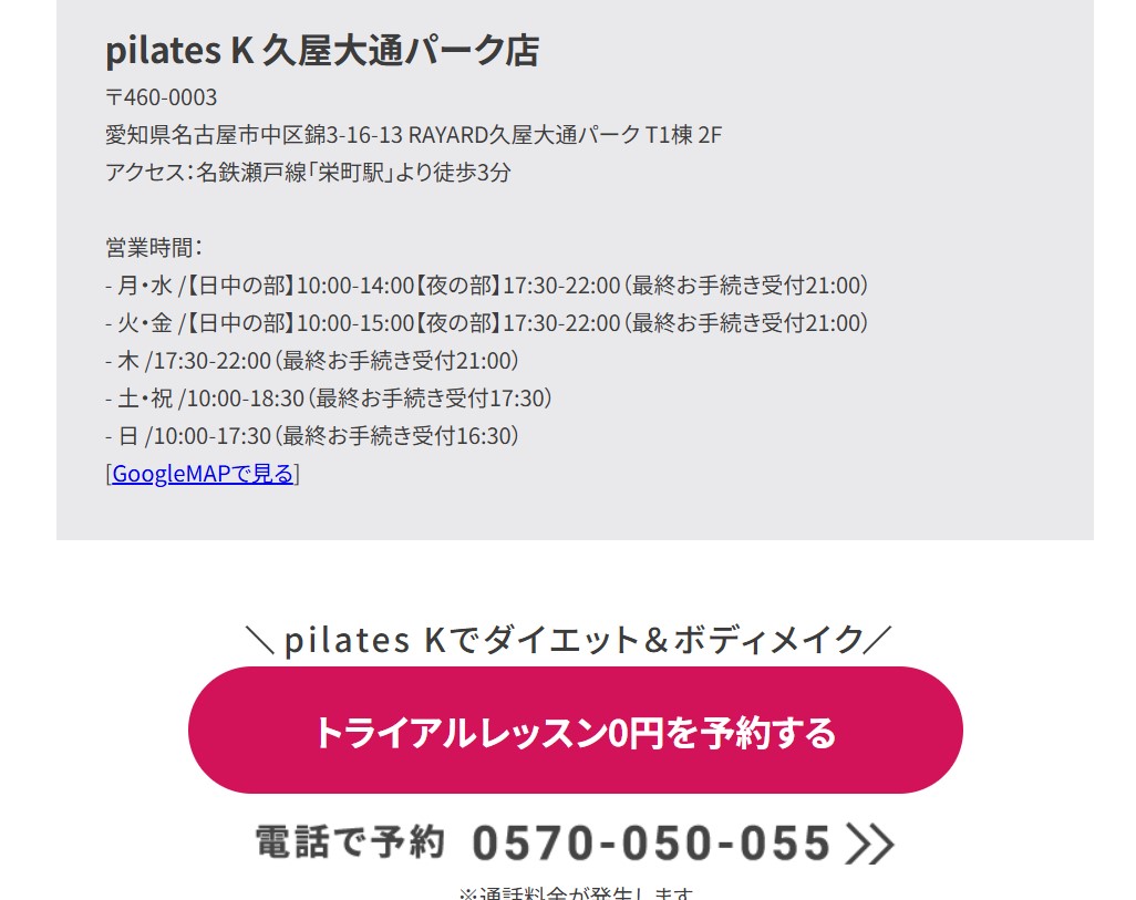 | 公式サイト | ピラティスK 久屋大通パーク店 |