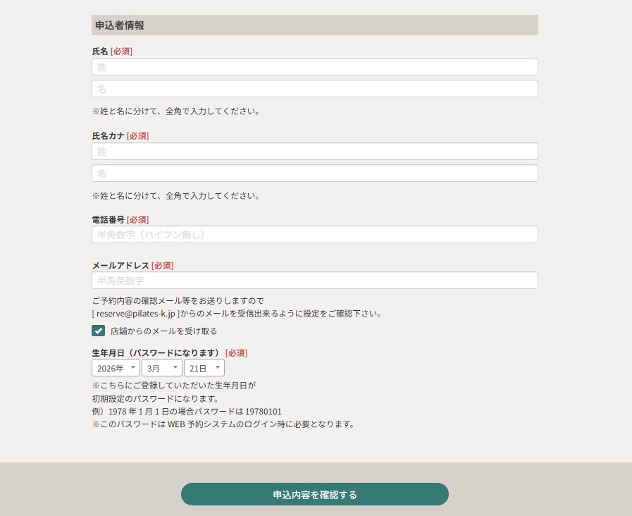 ピラティスK のマンスリー会員の入会手続きには、以下のものが必要です。