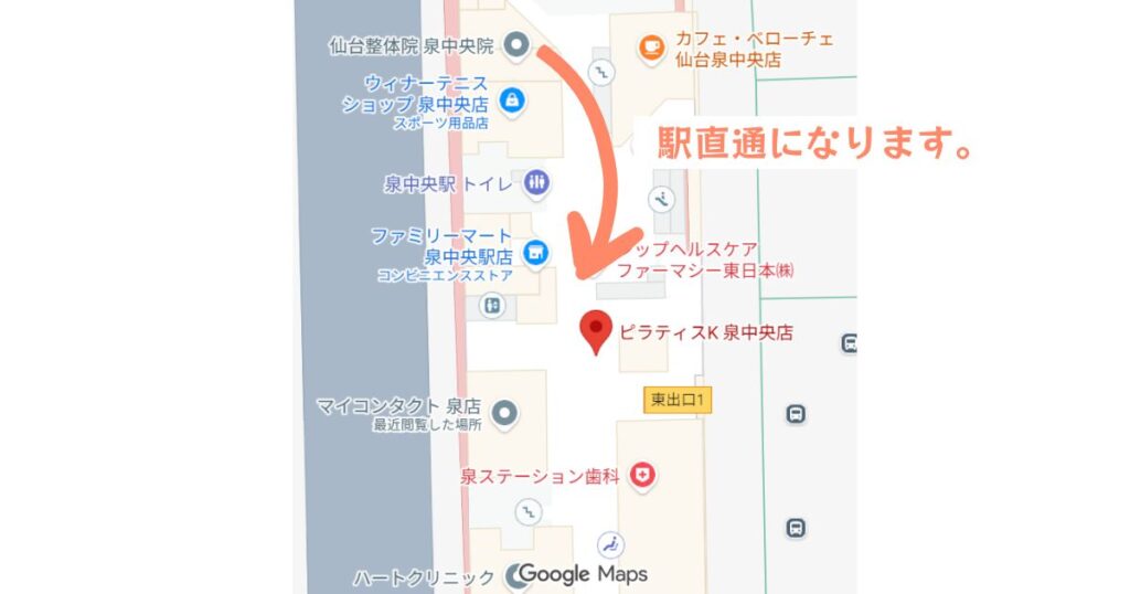 ピラティスK泉中央店に駅から徒歩で行くまでの流れ