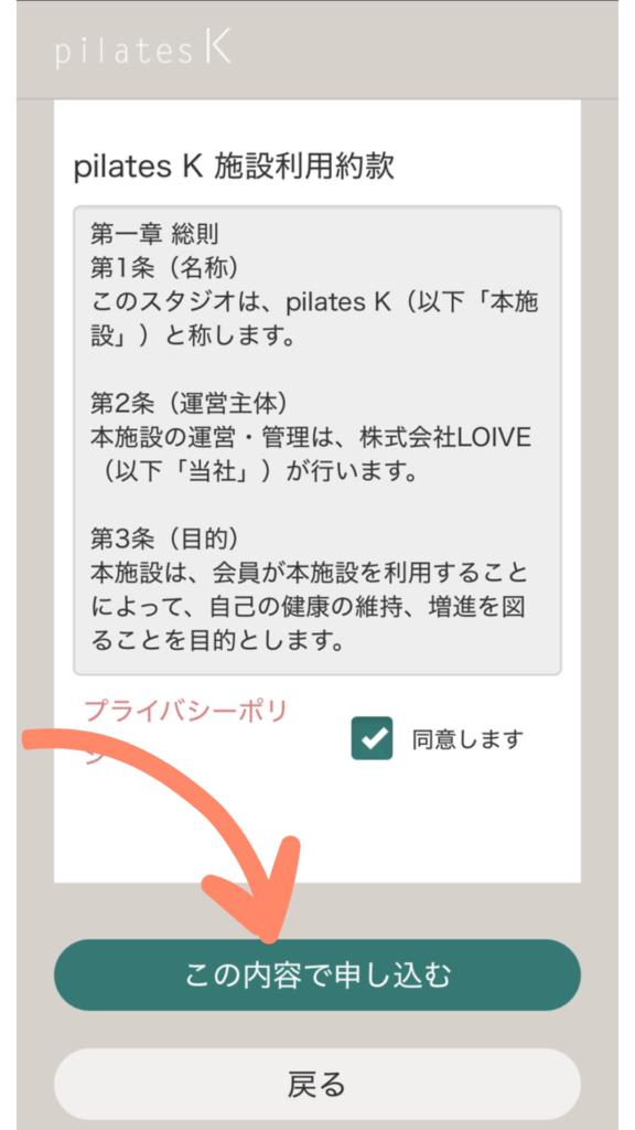 ピラティスK吉祥寺店は、希望月の2ヶ月前(前々月)の20日までに、