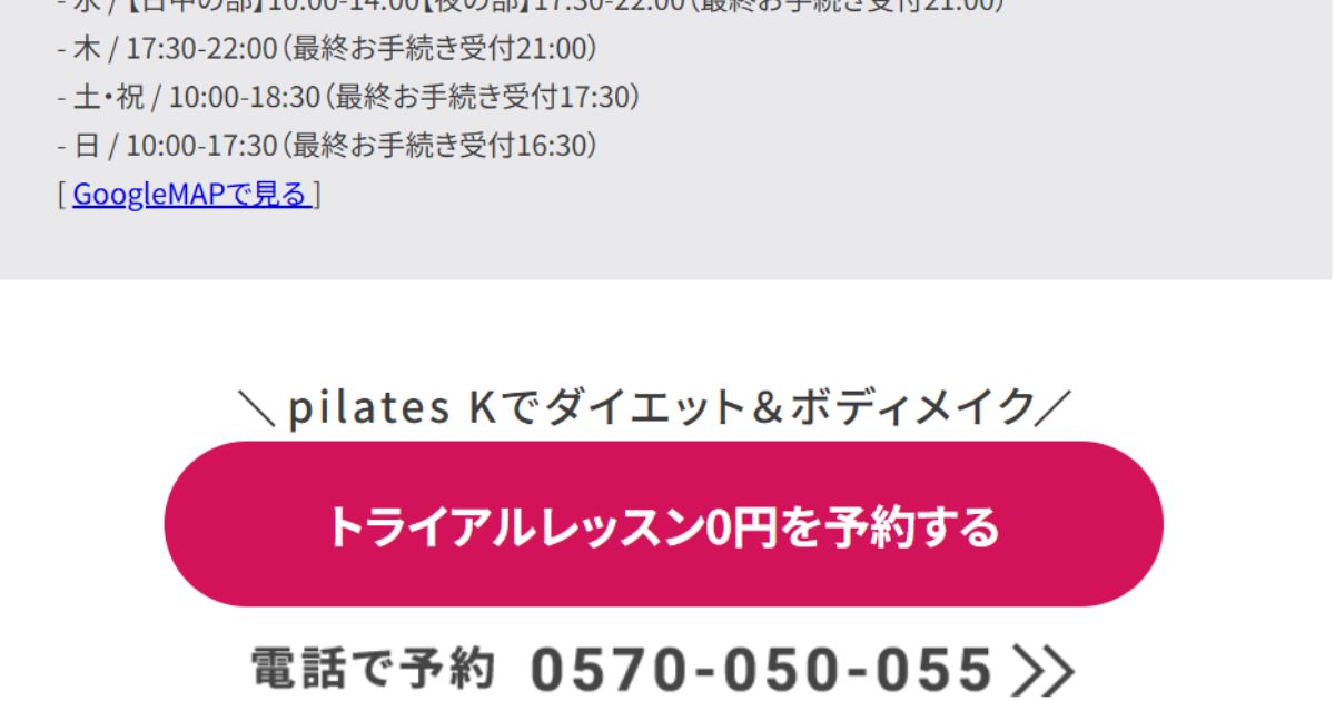 自宅から近くに新しくピラティススタジオがオープンしたので行きはじめました。スタッフの方皆さんやさしくかわいいです。デイ会員で行ける時は毎回通っています。ちょっと腰痛があって通いはじめたのですが、体幹アップできるようにがんばります。引用元:Google口コミ