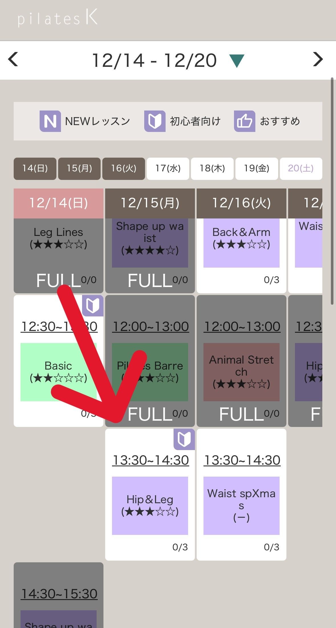 ピラティスK大森店は、希望月の2ヶ月前(前々月)の20日までに、