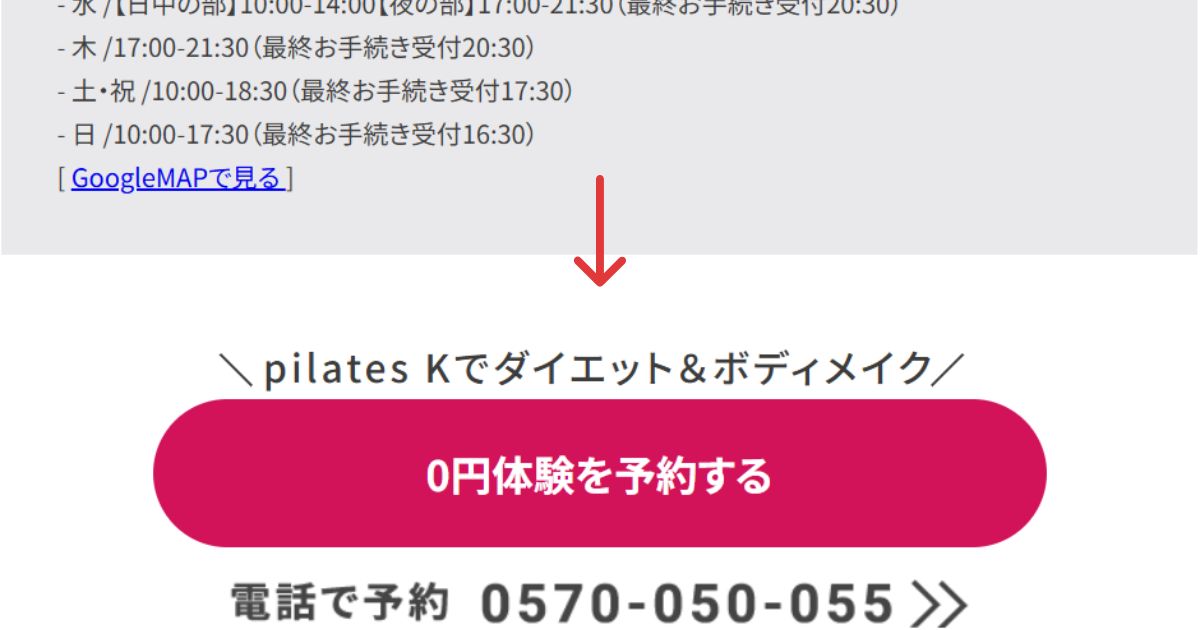 ②”0円体験を予約する”ボタンを押す