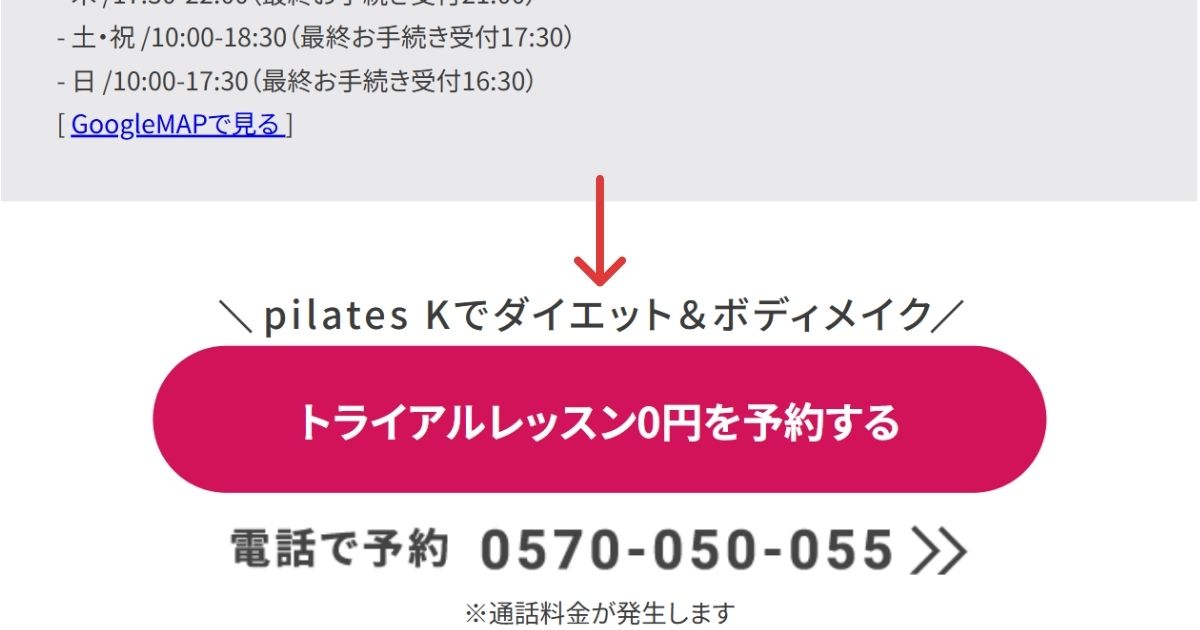 ②”トライアルレッスン0円を予約する”ボタンを押す