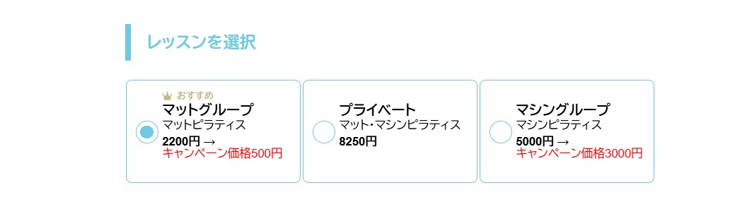 | レッスン時間 | 1コマ/55分(マット・マシンともに) |