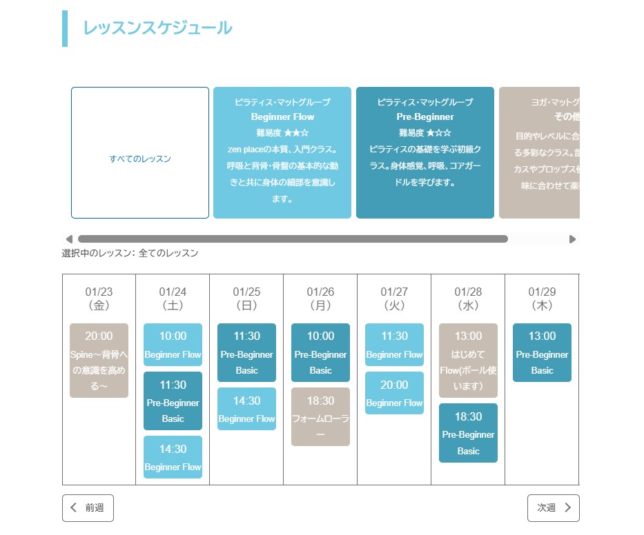 - zen place ピラティスの料金表一覧
