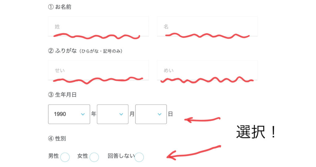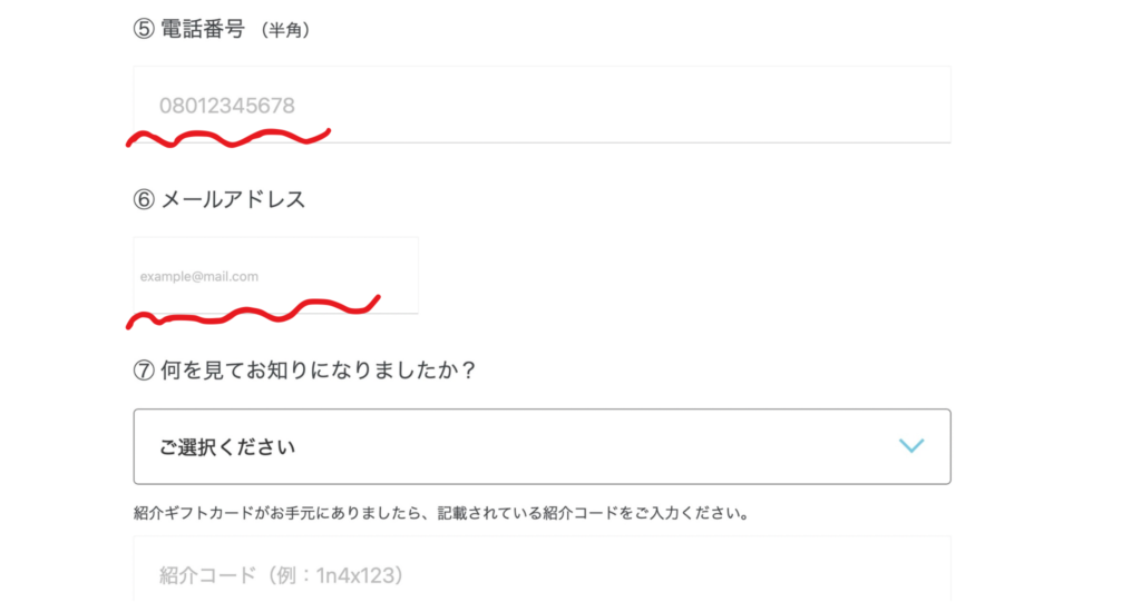 ⑤必須項目を入力して確認するをクリック
