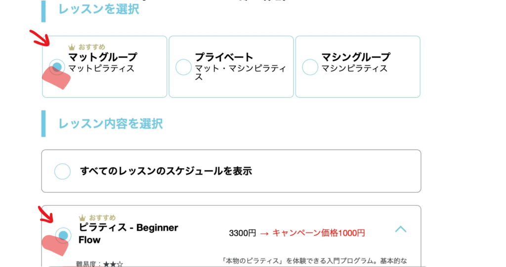①公式サイトから体験レッスンを予約する