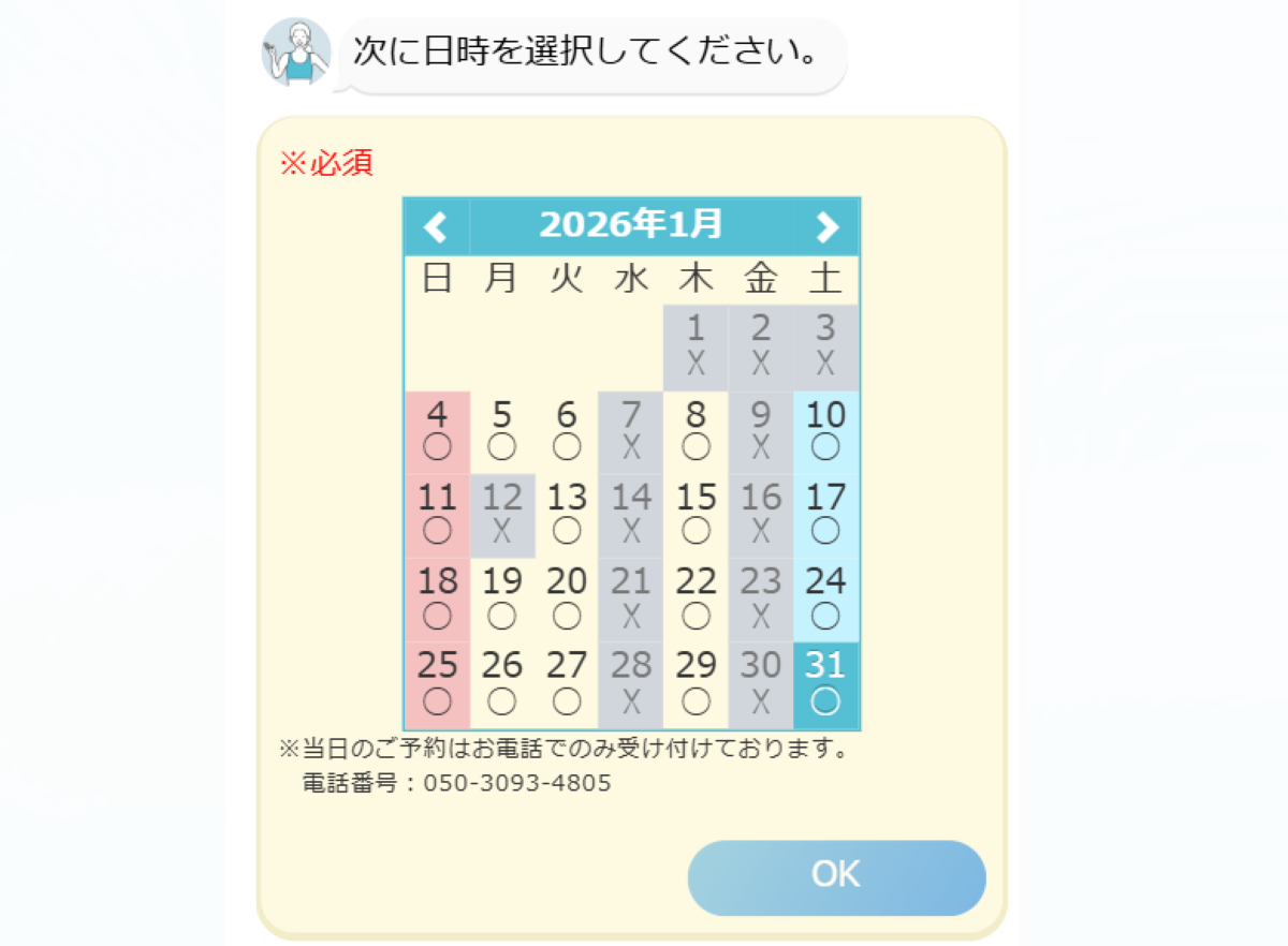 事前に登録スタジオもしくは、総合受付(050-3355-5225)までお電話で来店予約をお願いしています。