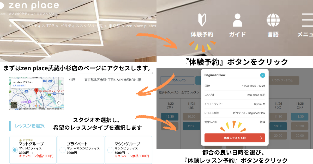 zen place ピラティス武蔵小杉店の申込までの流れ