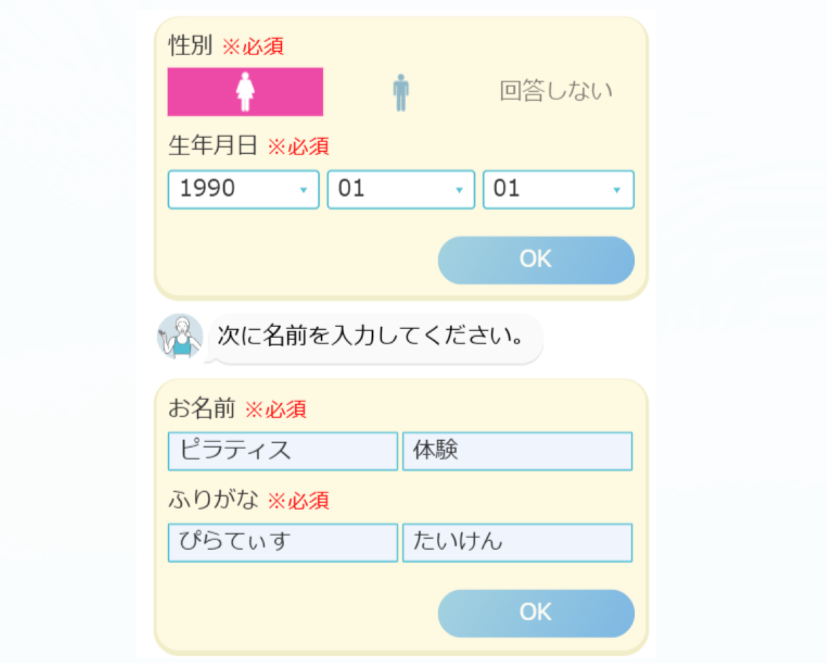 ⑤性別・生年月日・名前・電話番号・メールアドレス等の入力