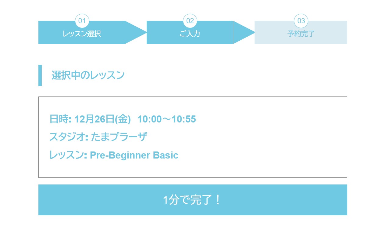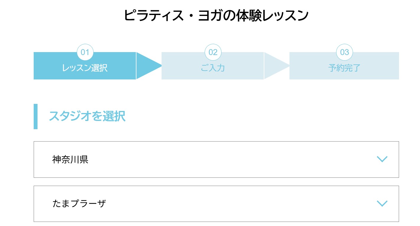 公式サイトの「体験予約」から、体験レッスンの希望スタジオ・コース・日程を予約する