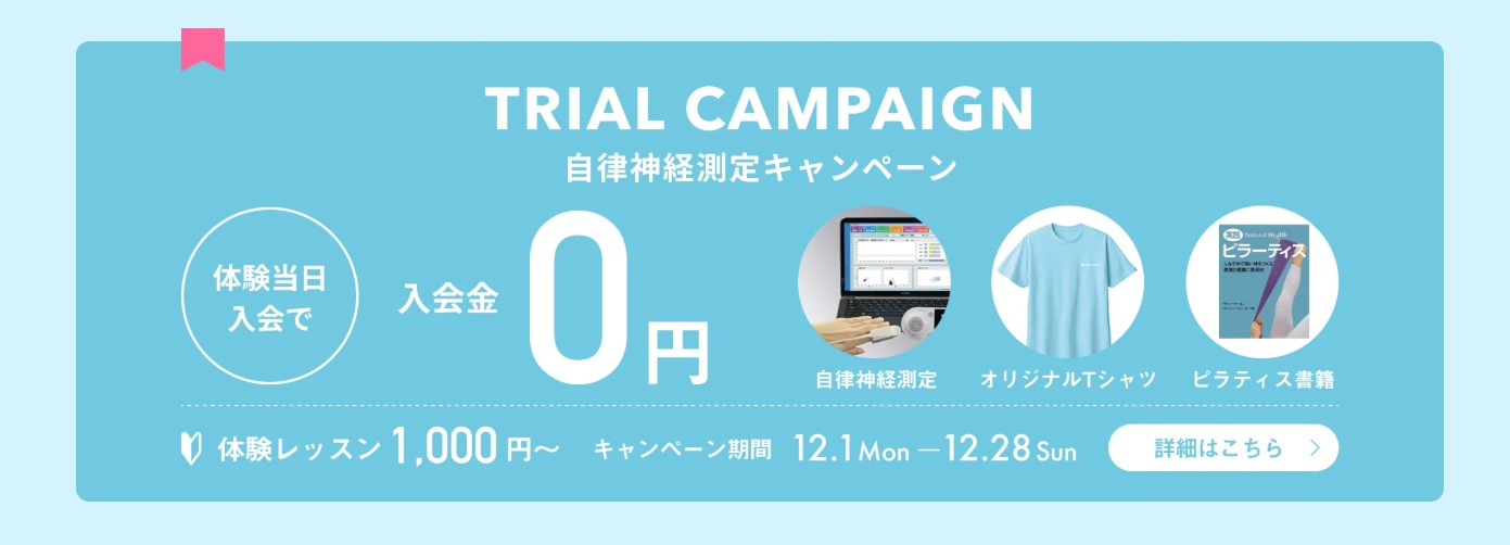 ※体験レッスン当日に入会手続きを行うと、入会金が無料になるキャンペーンを実施している場合があります。最新の情報や詳細については、公式サイトや最寄りのスタジオにお問合せください。