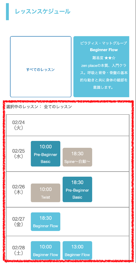 zen place ピラティス レッスンの種類を選択する