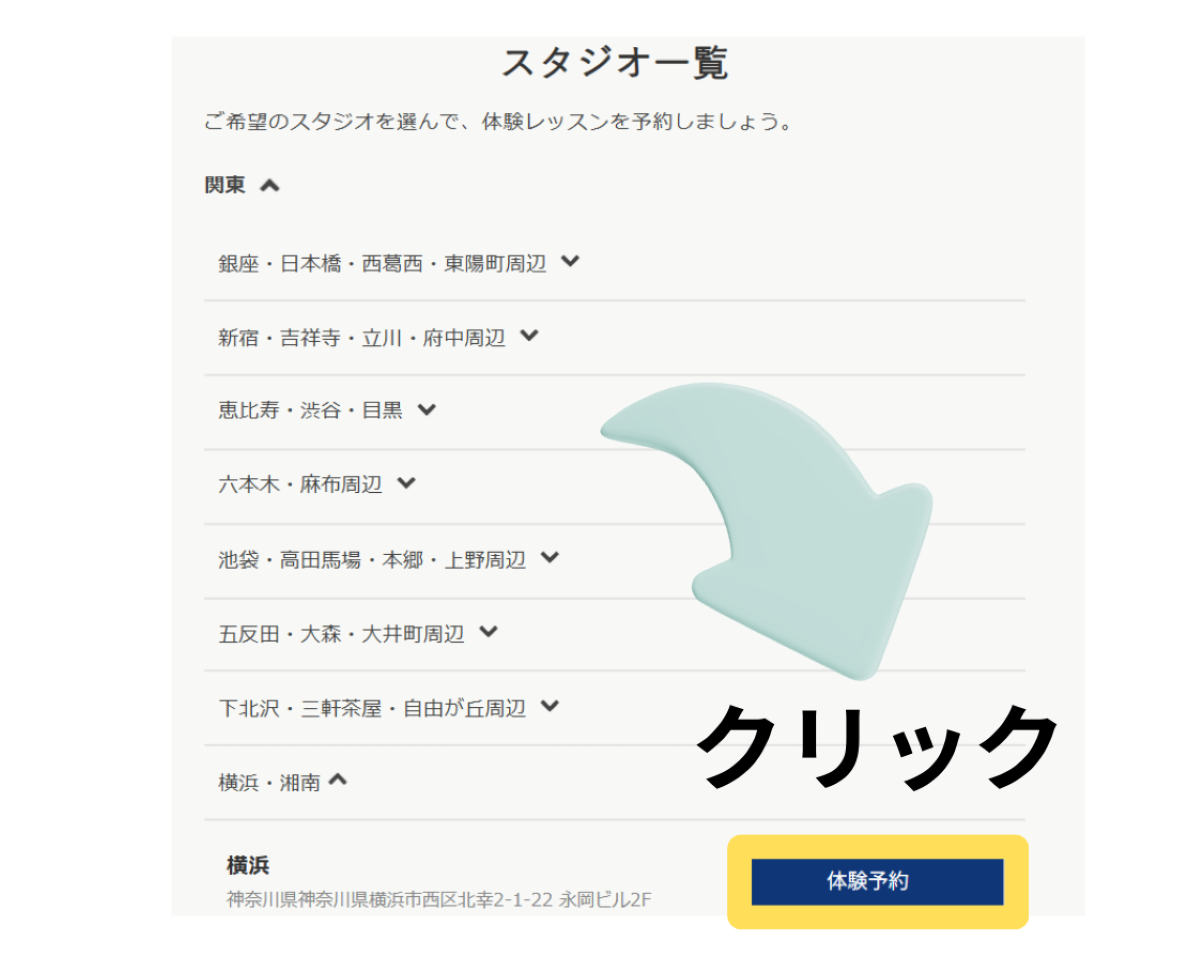 公式サイト(またはLINE・電話)から、体験レッスンの希望スタジオ・コース・日時を予約する