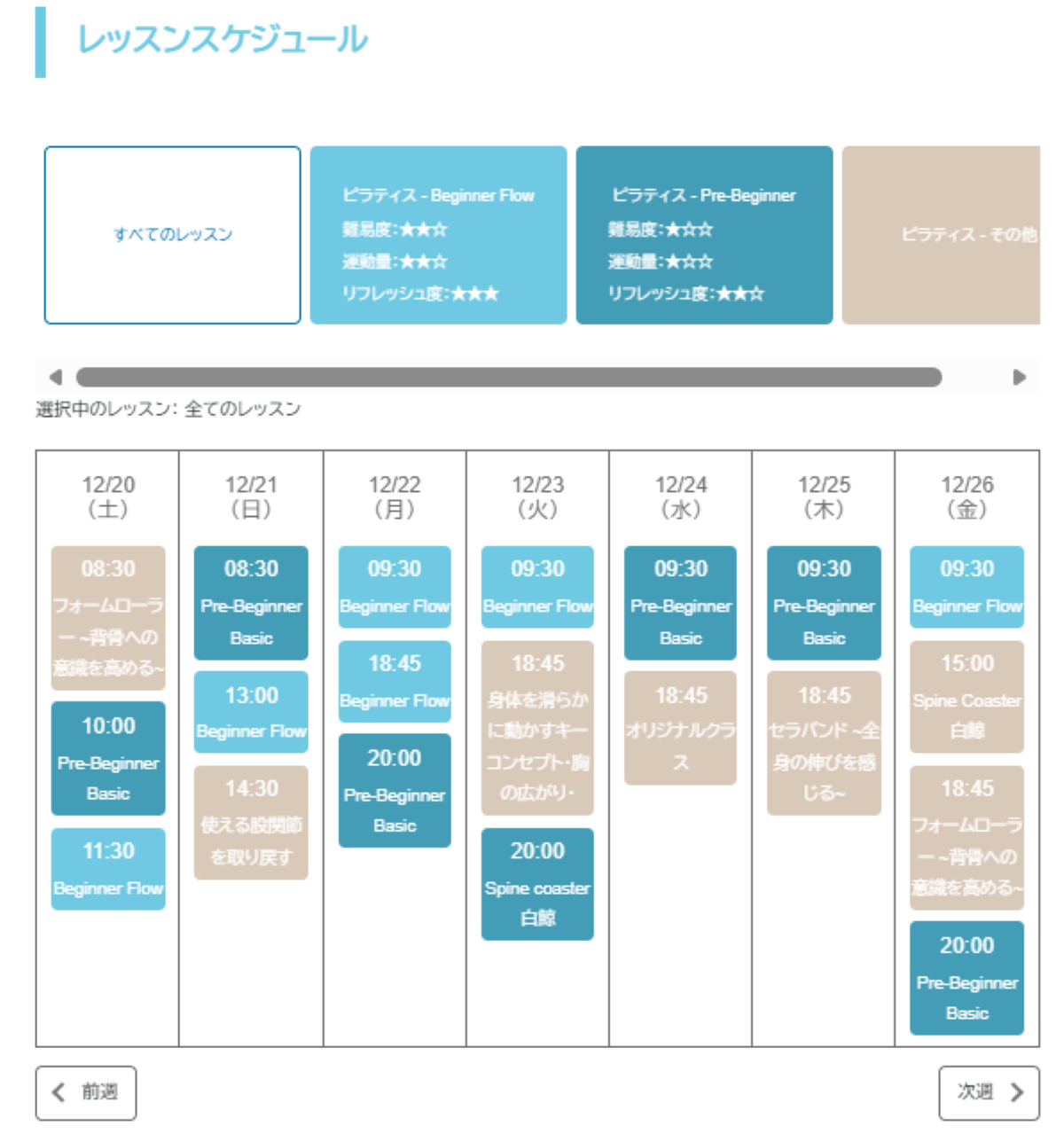 | 方法 | スタジオ/オンライン | スタジオ | スタジオ | スタジオ | スタジオ | スタジオ |