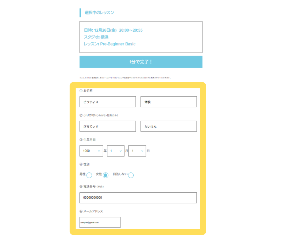 ④名前・生年月日・性別・電話番号・メールアドレス等の入力